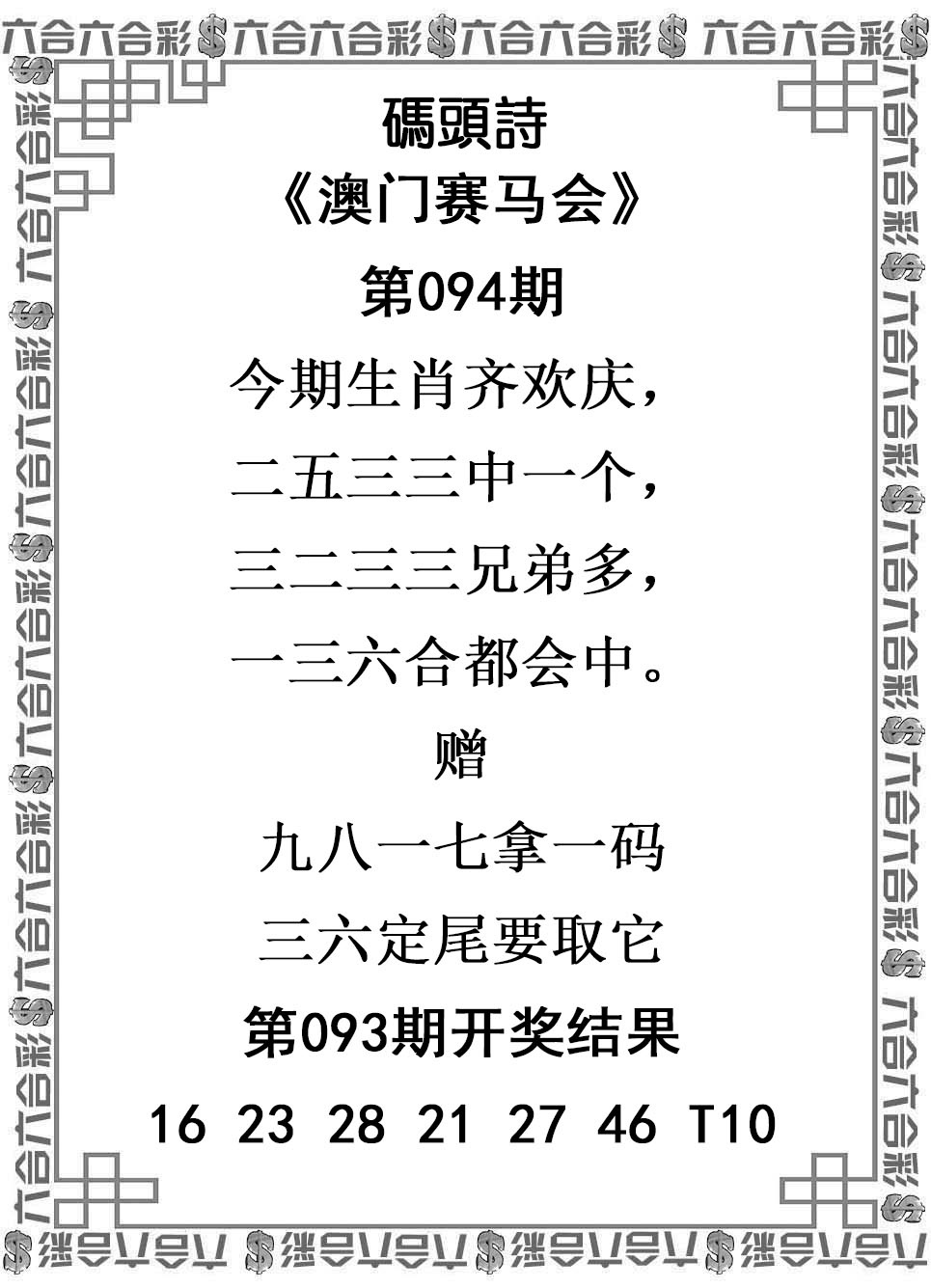 下篇:096期澳门码头诗